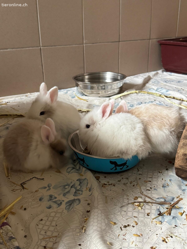 Die Kaninchen werden idealerweise alle drei zusammen vermittelt, keine Einzelhaltung, und nur in ein Zuhause, in dem sie nicht im Käfig gehalten werden, sondern wo sie in einer artgerechten, gesicherten Aussen- oder Innenhaltung leben können. Die drei lassen sich zwar auch mal berühren, sind aber nicht wirklich handzahm.