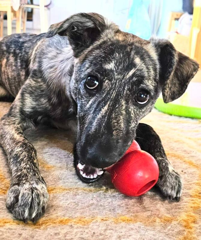 Da ich noch jung bin, brauche ich jemanden, der mir mit viel Liebe zeigt, wo die Grenzen sind und wie die Welt funktioniert. Ein sozialisierter Ersthund, von dem ich lernen kann, wäre kein Hindernis.