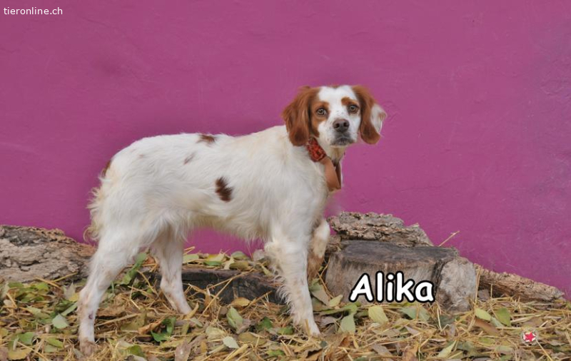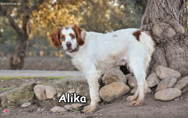 Alika ist von ihren Besitzern in einem mittelmäßigen Zustand im Tierheim abgegeben worden, weil sie läufig war. Diese liebevolle Hundedame feiert ihr Leben von dem Moment an, in dem sie das Tierheim betreten hat. Wesen ist: bezaubernd, sensibel, intelligent, fügsam, gehorsam, kameradschaftlich, neugierig, begeisternd, reizend, verspielt, kess und stur. Sie will gefallen und lernen.
