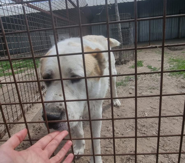 Amun ist ein wunderschöner, stattlicher Zentralasiatischer Hirtenhund – kräftig gebaut. Im Oktober 2020 kam er gemeinsam mit seiner Gefährtin Grisa als beschlagnahmter Hund zu uns ins Tierheim nach Ungarn. Beide waren stark unterernährt – doch inzwischen hat sich Amun zu einem prächtigen, gesunden Rüden entwickelt.