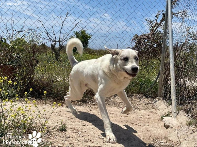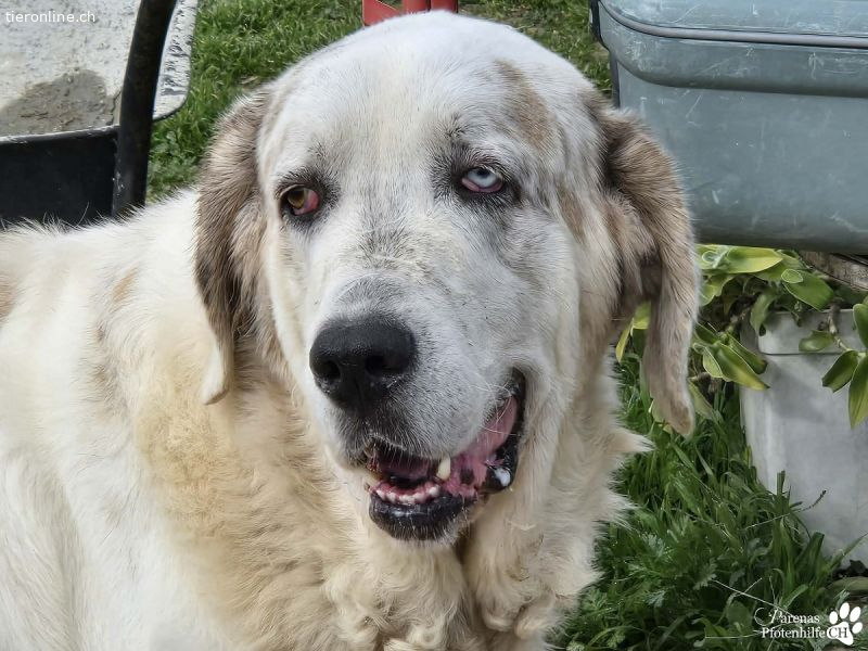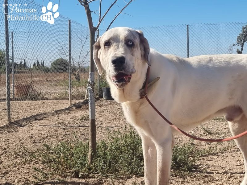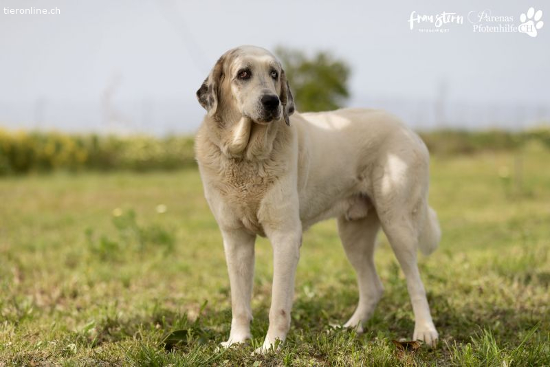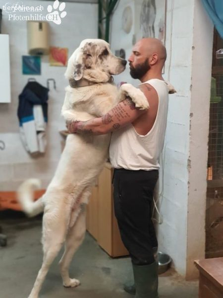 Gandalf ist ein ganz typischer Vertreter der Mastine. Ein wunderbarer, ruhiger, sanfter Riese, der sich aber seiner Grösse und seiner imposanten Erscheinung sehr bewusst ist und diese auch einzusetzen vermag. Hier im Refugio hat er schon öfters versucht in kleineren Räumen sein Futter oder seine Schlafbox zu verteidigen. Lässt man sich dann von seiner Erscheinung beeindrucken merkt er sich das und weiss genau, dass er damit durchkommt. Er weiss aber auch ganz genau bei wem er das nicht machen kann und unterscheidet da ganz fein. Daher wünschen wir uns für Gandalf Menschen, die mit beiden Beinen im Leben stehen und sich gerne mit dem Thema Mastin und deren Bedürfnisse und auseinandersetzen möchten.