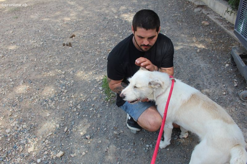 Tristan ist einer der armen Hunde, die bisher in ihrem Leben nichts Schönes erfahren durften, er wurde neben 2 Welpen mit einer Kette am Hals angebunden gefunden. Die Kette war so schwer, dass er nicht richtig seinen Kopf heben konnte. Die Welpen hatten Ähnlichkeit mit Tristan, so nehmen wir an, er könnte der Vater sein. Die beiden kleinen Schätze haben schon ihre Familien gefunden.