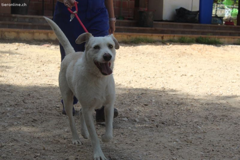 Unser sahnefarbener Wirbelwind möchte auch so gern spielen, rennen und toben, sich den Wind um die Nase wehen lassen, die Sonne auf seinem Fell genießen und dass Gras unter seinen Pfoten spüren, alles, was für einen geliebten Familienhund selbstverständlich ist. Leider ist hier im Tierheim nur wenig Zeit für die Hunde zum Freilauf am Tag, auch wenn die Pfleger sich alle Mühe geben, es den Hunden hier so schön wie möglich, eben unter diesen Umständen zu machen.