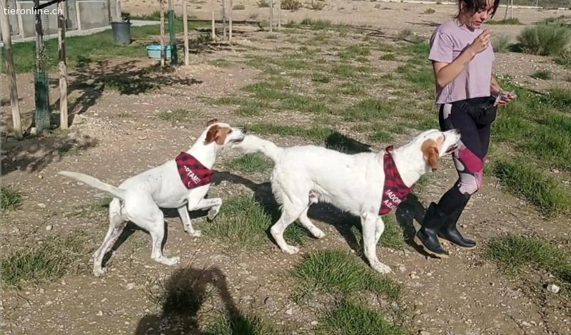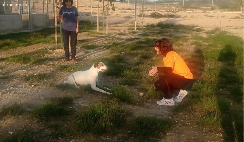 Doch eines Tages geschah ein kleines Wunder. Fremde Tierschützer tauchten auf und holten uns aus dem Zwinger. Er regnete sintflutartig, das weiß ich noch. Sie brachten uns in ein anderes Tierheim, das ADVCA in Zaragoza. Nun ging es uns gleich viel besser. Ein eigenes, trockenes Zimmer mit bequemen Liegeplätzen und ein gefüllter Futternapf. Und alle waren so freundlich. Eine nette Frau hat mit uns Ball gespielt. Das war toll. Noch nie hatte jemand mit uns gespielt.