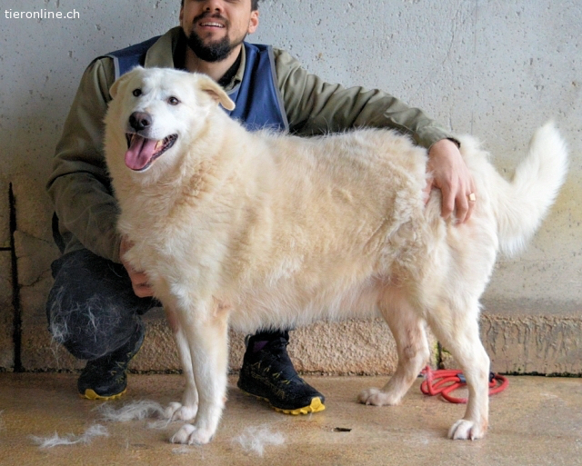 Update März 2025 - Zugegeben, Sallustio war sicherlich schon einmal besser in Form. Unser weißer Riese hat sich in den mittlerweile über drei Jahren (Stand Januar 2025), die er im Canile-Zwinger feststeckt, das ein oder andere Gramm Kummerspeck zugelegt. Aber was soll man auch machen, wenn einem einfach alles genommen ist, wofür man brennt? Wenn man keine Aufgabe hat und die Zeit einfach nicht vergehen will? Was macht es da schon für einen Sinn, die paar Quadratmeter Betonboden zu etwas anderem unter die Pfoten zu nehmen, als um zu fressen? Richtig: gar keinen.