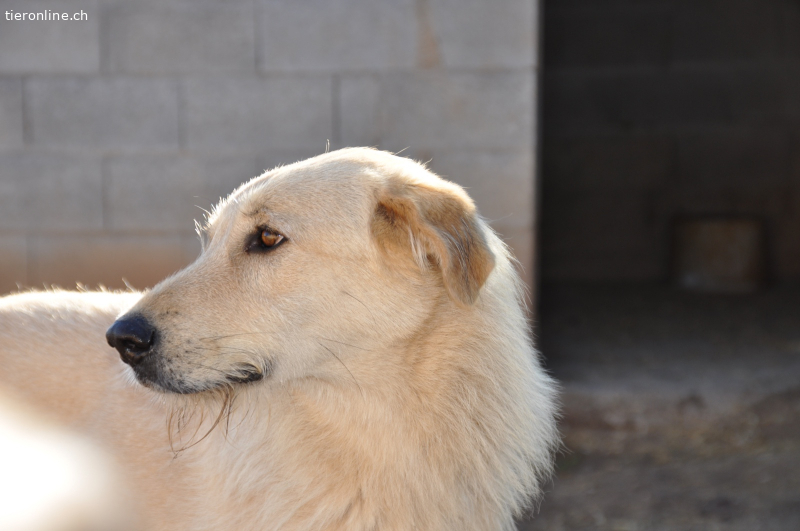 Das ist unser wunderschöner Brad. Brad kam als Junghund in unser Tierheim. Aufgrund von Personal- und Zeitmangel ist es unserem kleinen Team bisher leider nicht gelungen, effizient mit Brad zu arbeiten, so dass wir ihn bis heute nicht anfassen können. Nur in Situationen, in denen er wirklich Angst hat, sucht er interessanterweise Schutz bei seiner Pflegerin, verkriecht sich hinter ihr und lässt sich anfassen. (Das habe ich bisher drei-/viermal beobachten können). Dies zeigt, dass er durchaus weiß, dass er seinen Menschen vertrauen kann und ihnen das Vertrauen entgegen bringt, dass seine Menschen ihn im Zweifel schützen.