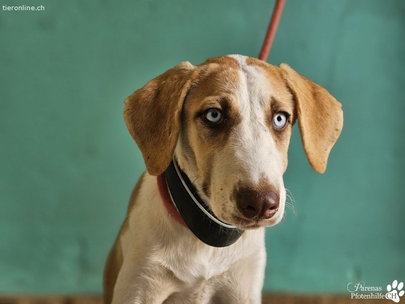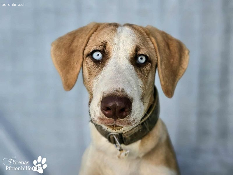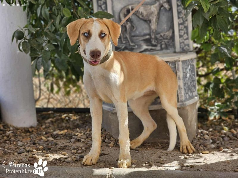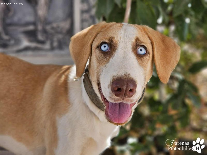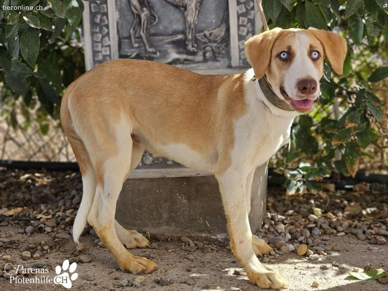 Allein beim Blick in Henriettas himmelblaue Augen ist man schon von ihr fasziniert. Sie versteht es perfekt, uns mit ihrem Blick förmlich zu hypnotisieren. Das junge Mischlingsmädchen verbreitet überall im Refugio gute Laune und Lebensfreude. Sie spielt gern mit anderen Hunden, ist dem Team gegenüber zutraulich und verschmust. Wer Henrietta adoptiert, bekommt nicht nur eine treue Freundin, sondern lebendiges Glück auf vier Pfoten.