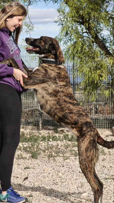 Tierra ist eine wahre Herzenshündin: liebevoll, verschmust, sozial und sehr gehorsam. Sie geht schön an der Leine und zeigt sich beim Spazierengehen aufmerksam und angenehm. In ihrem bisherigen Zuhause hat sie problemlos mit anderen Hunden sowie mit ein paar Katzen zusammengelebt. In ihrer früheren Familie lebte auch ein Baby, das allerdings noch sehr klein war. Daher können wir nicht mit Sicherheit sagen, wie sie sich mit älteren Kindern verhält, gehen jedoch davon aus, dass sie auch hier keine Schwierigkeiten haben wird. Tierra liebt die Nähe zu ihren Menschen über alles. Besonders gerne stellt sie sich auf die Hinterbeine, um einen innig zu umarmen, eine ihrer ganz bezaubernden Eigenheiten, mit der sie jedes Herz im Nu erobert.