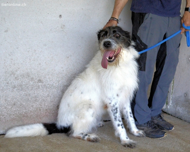 Wie so oft sind die Informationen über Bahul, den überaus gelungenen Mix aus was auch immer, sehr überschaubar. Also sehe ich ihn mir an, diesen weiß-schwarzen, etwas rauhaarigen Typen mit den „Wunschpunkten“ an den Beinen (für alle, die das Sams kennen;-)… wie er da so sitzt/steht… an der Seite des Menschen! Und das scheint genau DER Ort zu sein, an dem Bahul sich gut fühlt. Er genießt – wenn auch nur für den kurzen Augenblick – die Nähe, Aufmerksamkeit und Zuwendung, obwohl er diesen Zweibeiner nicht einmal kennt.