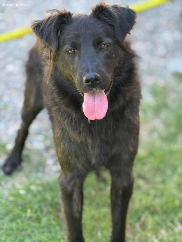 Groß war die Freude, dass er dort nicht allein gestrandet war, sondern von Hunden in ein Rudel aufgenommen wurde, die sein Schicksal teilten. All das ist liegt nur wenige Wochen zurück. Heute (Stand 3/2026) ist Donut aufgeblüht. Er genießt die Freundschaft der anderen Hunde, tobt mit ihnen über den Hof und zeigt, dass er verträglich mit Rüden und Hündinnen ist. Er hat zugelegt und aus dem mageren und verwahrlosten Streuner ist ein hübscher Junghund geworden. Donut genießt jede Aufmerksamkeit der Tierschützerin und lässt sich vertrauensvoll kraulen. Auch Leckerchen stehen hoch im Kurs und für diese kommt er gleich angeflitzt.