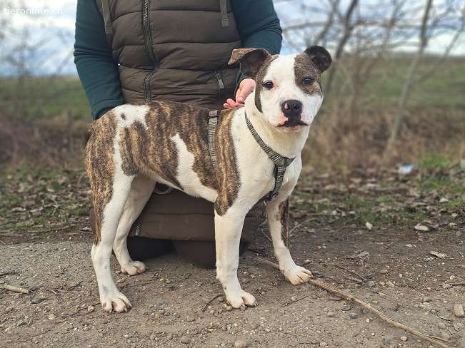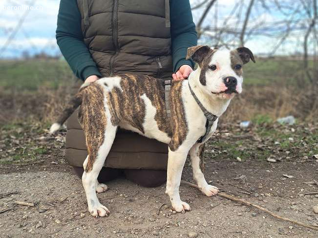 Aufgrund ihres vermuteten Rassemixes darf Loretta leider nicht nach Deutschland, sondern nur in bestimmte Kantone der Schweiz (oder in andere Länder ohne Einschränkung, wie z.B. Ungarn) vermittelt werden.
