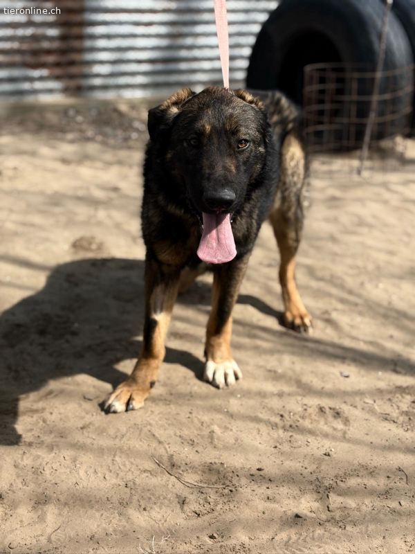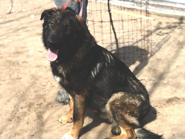 Berard ist ein freundlicher und netter Bursche, braucht aber etwas Zeit, bis er einem sein Vertrauen schenkt. Für ihn war es ungewohnt, dass er von Menschen Liebe und Aufmerksamkeit bekommt, denn sein Leben war vermutlich von Einsamkeit und Langeweile geprägt. Langsam findet er gefallen an Streicheleinheiten und geniesst diese Nähe sehr. In Zukunft möchte er dies nie mehr missen müssen. Leider durfte Berard in seinem bisherigen Leben nichts kennenlernen. Er ist aber bereit, all das Versäumten aufzuarbeiten und freut sich, wenn er gemeinsam mit seinen neuen Menschen die Schulbank drücken darf. Das an der Leine laufen kennt er, ist natürlich noch ausbaubar. Berard sucht hundeerfahrene Menschen, welche ihn verstehen, führen und lesen können. Das Tierheim vermutet er ist ein Schäfer x Kaukasenmix. Er möchte gerne auf dem Lande leben und einen Garten würde ihn sehr glücklich machen. Mit Hündinnen versteht sich Bernard gut, mit Rüden wurde er noch nicht getestet. (Stand 3.4.2026)