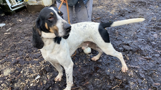 Nun, im frischen Jahr 2026, steht der hübsche Valentin ratlos an einer Kreuzung seines Lebensweges und versteht die Welt nicht mehr. Sein bisheriges Leben war geprägt von der Jagd und wahrscheinlich war er ein wichtiges Mitglied einer festen Meute. Denn der Schweizer Laufhund ist ein Spezialist in der Nachsuche von angeschossenem Wild oder auch Profi darin, dem Jäger das Wild vor die Flinte zu treiben. Nun steht der liebe Bub mit vielen Fragezeichen im Kopf vor den lieben Tierschützern vor Ort, da sich seine Welt von einem Moment auf den nächstem komplett verändert hat