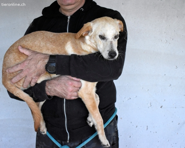 Genau so arbeitet Dauerstress im Hundekörper. Und genauso sieht Boris aus. Boris ist seit ca 4 Monaten (Stand Dez. 25) im Lager. Heute zeigte er ein Bild, das wehtut, wenn man es wirklich versteht: 49 cm, sehr aufgeregt, fast hysterisch, zwanghaftes Bellen, dabei hyperaktiv und gleichzeitig erschöpft wirkend. Er bellte gegen Menschen, gegen seinen Zwingerpartner und gegen die Hunde außen herum – ein Verhalten, das im Lager „weit verbreitet“ ist, weil dort viele Nervensysteme permanent auf Hochspannung laufen. So sehr, dass man ihn, um überhaupt arbeiten zu können, die ganze Zeit festhalten musste, weil er überhaupt nicht ruhig wurde.