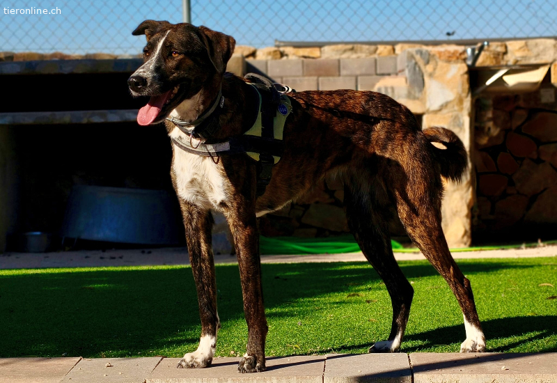 Tierra ist eine wahre Herzenshündin: liebevoll, verschmust, sozial und sehr gehorsam. Sie geht schön an der Leine und zeigt sich beim Spazierengehen aufmerksam und angenehm. In ihrem bisherigen Zuhause hat sie problemlos mit anderen Hunden sowie mit ein paar Katzen zusammengelebt. In ihrer früheren Familie lebte auch ein Baby, das allerdings noch sehr klein war. Daher können wir nicht mit Sicherheit sagen, wie sie sich mit älteren Kindern verhält, gehen jedoch davon aus, dass sie auch hier keine Schwierigkeiten haben wird. Tierra liebt die Nähe zu ihren Menschen über alles. Besonders gerne stellt sie sich auf die Hinterbeine, um einen innig zu umarmen, eine ihrer ganz bezaubernden Eigenheiten, mit der sie jedes Herz im Nu erobert.