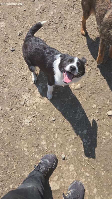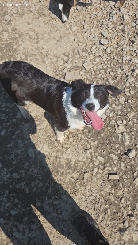 Ich bin Jana, ein kleines Mädchen mit schwarz-weißem Fell und einem aufmerksamen Blick. Ich