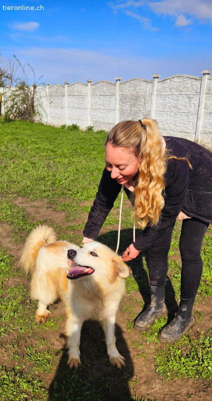 Mit anderen Hunden zeigt er sich verspielt, sozial und gut verträglich. Besonders im Freilauf kann er für einen Moment den Shelteralltag vergessen, ist sehr aktiv und zeigt seine lebensfrohe Seite.