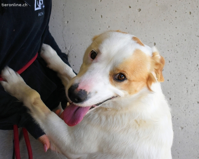 Bitte helft mir, hier nicht zu versauern! Keine Angst, ich bin nicht verwöhnt, doch von was ich nicht genug bekommen könnte, wäre Eure Zuwendung, Geduld beim Eingewöhnen, Güte, sanfte Hände, Wärme in der kalten Zeit, die aus dem Herzen und aus dem Ofen kommt, Gassigänge durch Dick und Dünn mit Euch und genug zu futtern.