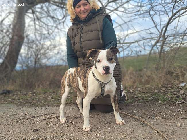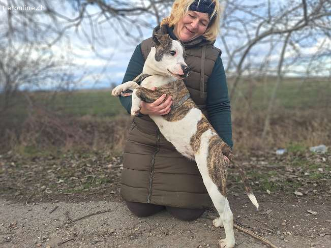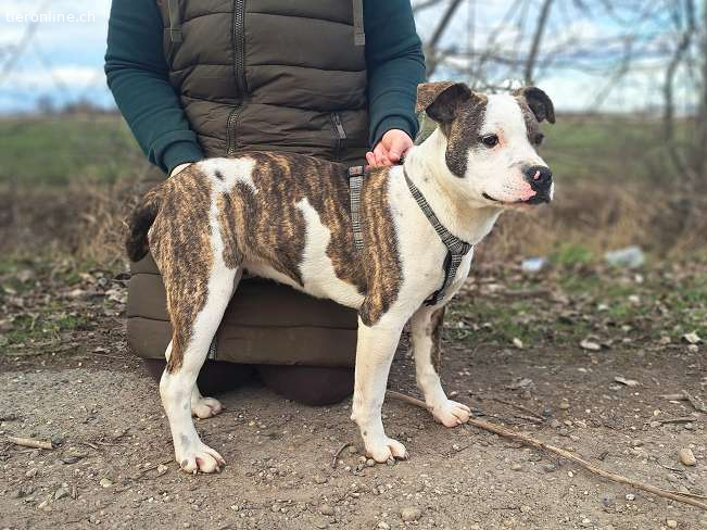 Aufgrund ihres vermuteten Rassemixes darf Loretta leider nicht nach Deutschland, sondern nur in bestimmte Kantone der Schweiz (oder in andere Länder ohne Einschränkung, wie z.B. Ungarn) vermittelt werden.
