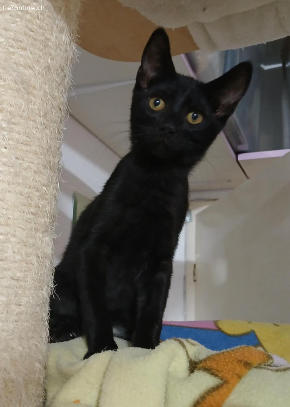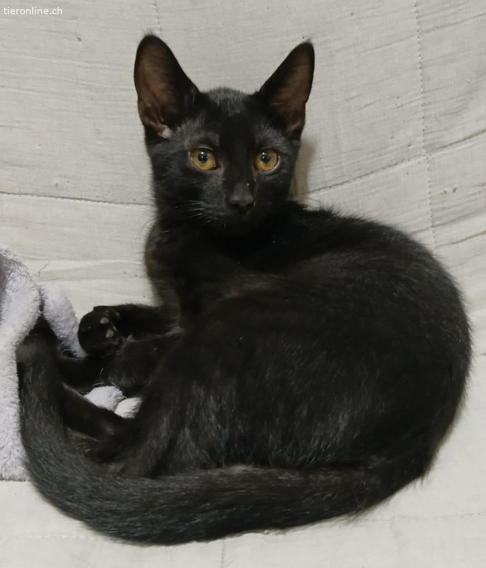 Es sind zwei Mädchen (schwarz und tricolor) und zwei Buben (schwarz und Tigerli). Alle vier Geschwisterli sind einfach nur zuckersüss, sozial, kittentypisch verspielt und sehr verschmust. Sie lieben sich alle sehr und sind immer zusammen, deshalb möchten wir sie zumindest paarweise vermitteln.