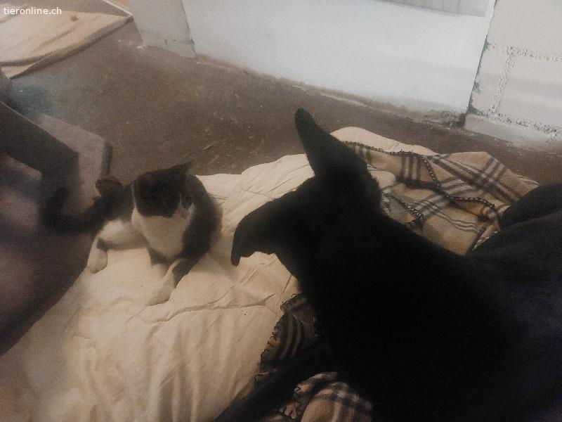 Auf der Pflegestelle leben sich auch mit Hunden zusammen. Wenn diese sie in Ruhe lassen und ein eher ruhiges und entspanntes Wesen haben, kommen sie gut damit klar.