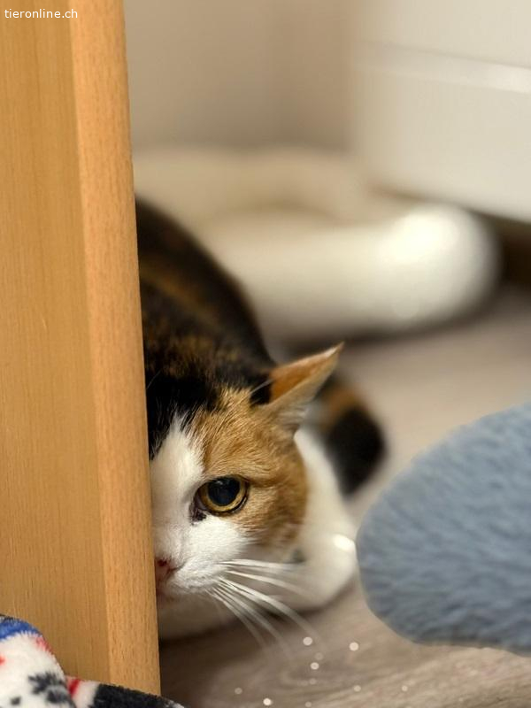Die hübsche dreifarbige Katzendame ist eine sanfte und ruhige Seele, die sich in ihrem eigenen Tempo öffnet. Streicheleinheiten beginnt sie immer mehr zu geniessen und zeigt dabei, wie viel Liebe in ihr steckt.