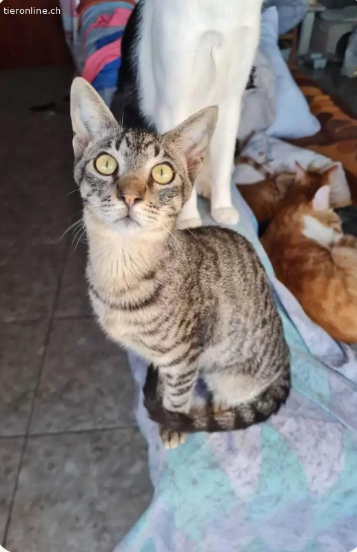Gremlin und Gizmo gehören zusammen, wo der eine ist, ist auch der andere kleine Kater zu finden. Der hellgraue Gremlin schaut zwar manchmal etwas grummelig, ist aber herzenslieb und tatsächlich der Ruhigere, der markanter gezeichnete und dunklere kleine Kater ist Gizmo. Und hey, beide sind Teenies. Und wenn sie mit einem halben Jahr dann reisen dürfen, sind sie kastriert, aber immer noch Teenies. Und junge Katzen sind wie junge Kinder. Lebhaft, zu Streichen aufgelegt, liebesbedürftig (ist Katze eh in jedem Alter) und verspielt.