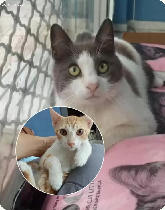 Renos ist der grauweisse Kater und Muffin der rote Teenie. Muffin rief verzweifelt und sehr sehr hungrig draussen in Elisavets Nachbarschaft nach Hilfe und Elisavet suchte das halbverhungerte Flohsäckchen und obwohl wirklich unsicher war ob er es schafft: er kämpfte sich zurück ins Leben und Renos adoptierte den kleinen Kater.