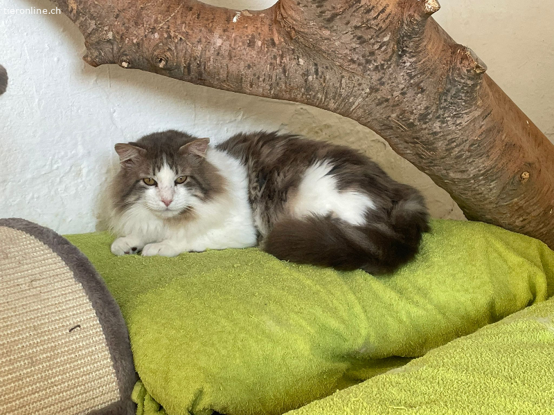 Der hübsche Langhaar Kater Momo lebte im Aussenbereich eines Hotels. Nun ist das ganze Areal für längere Zeit wegen Renovierungsarbeiten geschlossen und Momo musste eine andere Unterkunft suchen. Tierschützer brachten ihn in die Auffangstation.