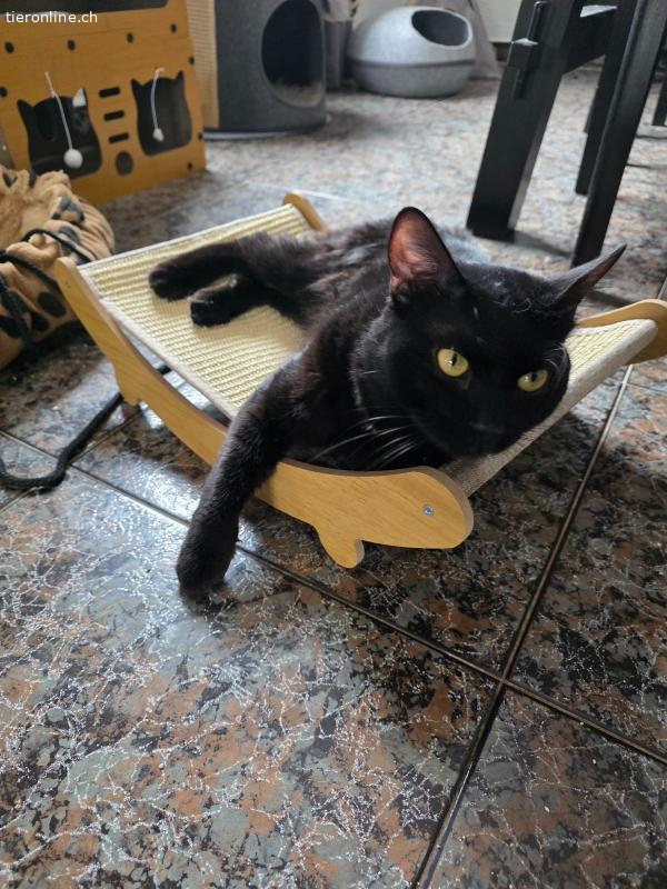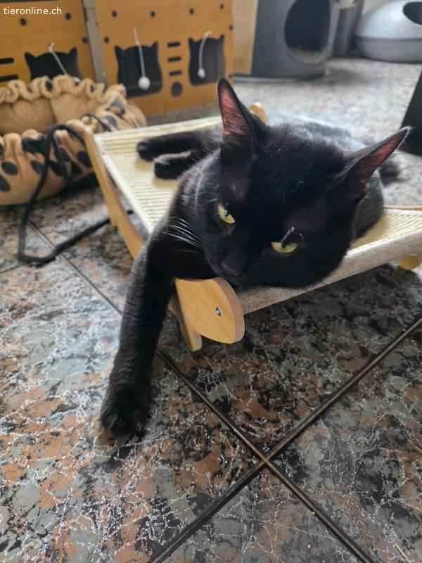 Optisch ist er ein echter Blickfang: ein kleiner Panther im Mini-Format, mit glänzend schwarzem Fell und leuchtend gelben Augen, die sofort ins Herz gehen.
